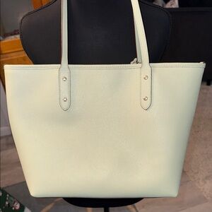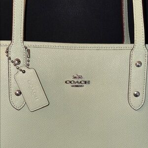 Coach city tote in sage green. Interior pockets, cross grain leather, great for a busy mom, professional, daily use, business casual, large tote, classic, St Patrick’s Day, spring summer winter fall pre owned. Great condition. See photos. 2601/30/MC