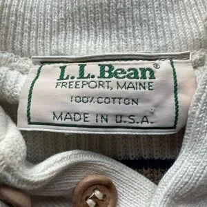 L.L. Bean Men's Cream and Black Striped Crewneck Sweater 100% cotton preppy M