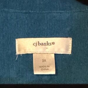CJ Banks Sz 3X Deep Teal Blue Corduroy Feel Zipper Jacket w/ pockets