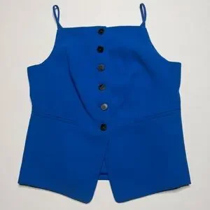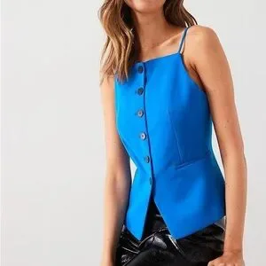 MANGO Halter Neck Gilet Buttons Sleeveless Suit Vest Blazer Royal Blue