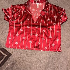 Victoria's Secret Red and White Bow Pajama Top