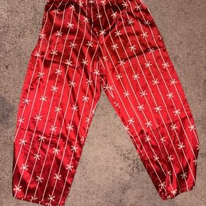 Silk red Victoria secret pajama set. red with white stripes and bow accents. Soft and comfortable for lounging. Brand spanking new without the tags. Size