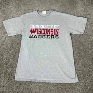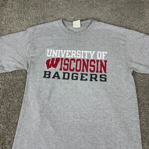 Wisconsin Badgers Shirt Mens Large Gray Red Short Sleeve NCAA Champion Casual