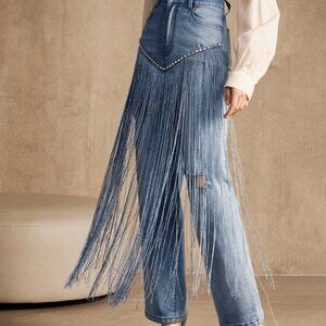 Blue Party Women's Heavy Fringe Diamond Straight Leg Jeans