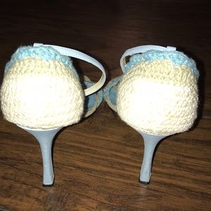 Very unique, crochet or knit look, very sturdy over leather. Stunning. Ankle wrap straps. Last pictures of the heels reveal a few small chipped/ peeling pieces. Shop with confidence! I have over 1000+ perfect 5 star ratings. I ship same or next day. Average ship time is .9 days. I check my closet regularly for fast response times on any questions. I offer bundle discounts to save you shipping and offer a great deal! Feel free to make me an offer, I simply LOVE offers! ❤️ thank you for shopping! 😊