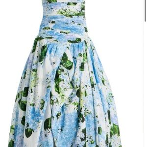 Chic strapless dress by Aje. Blue and green floral design. Bubble hem. Perfect bridesmaid dress. Never worn tags still on. Us size 4 au size 8.