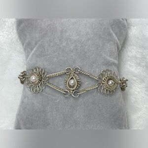 Amazing vintage 1970s Sterling silver wire bracelet with fake pearls