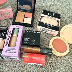 Assortment of new blushes, setting powders, foundation and concealers, highlighters. Top name brands. 10+ items! Some full sized; some sample sized.