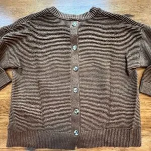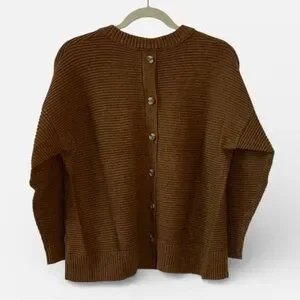 ⭐️ Madewell Greensboro Button-back Ribbed Sweater Heather Cinnamon Brown LARGE