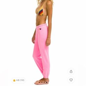 Size XS. Neon pink. Please view staining on both front legs. Maybe you are a stain master and can get them out or cut them off to wear as shorts!!🌸