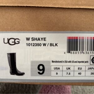 Sleek black boots by UGG. Ideal for wet weather. Gently worn only a few times and otherwise stored in the original box.