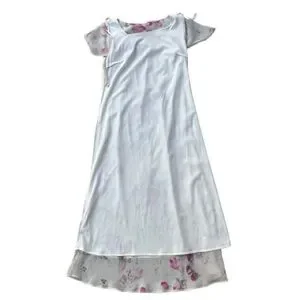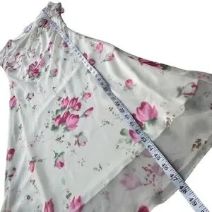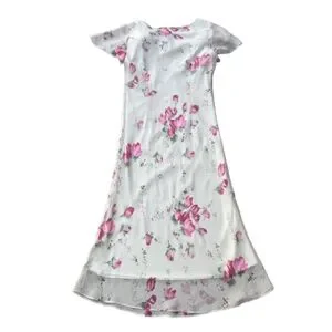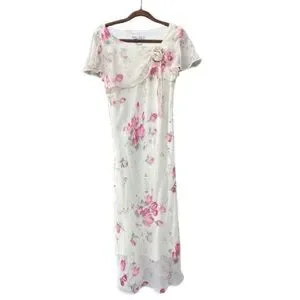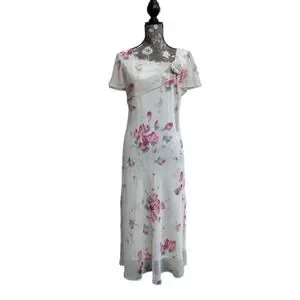 Dressbarn Women' 8 Ivory Cream Pink Floral Chiffon Short Sleeve Maxi Dress
