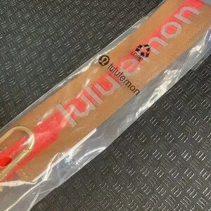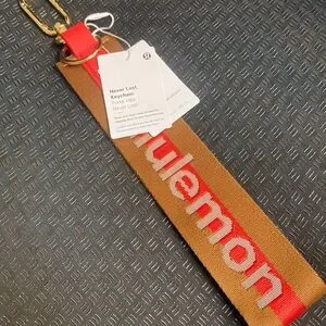 Lululemon keychain. Red and tan design. Gold tone hardware. Durable and chic.