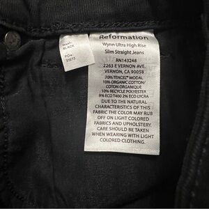 Reformation Wynn Ultra High Rise Slim Straight Jeans Black Size 26