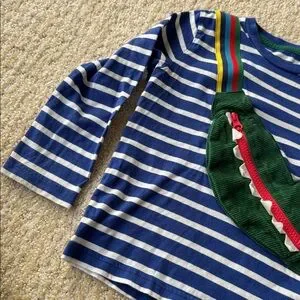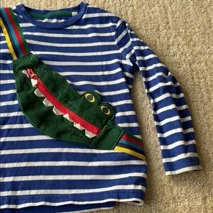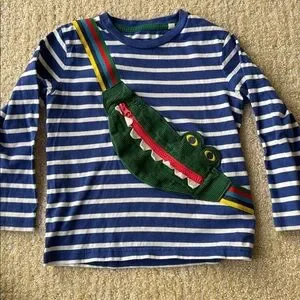 Mini Boden Blue Striped Shirt with Green Crocodile Accent