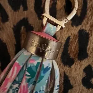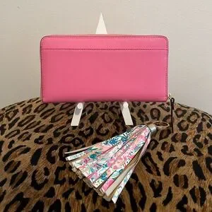 Kate Spade wallet in vibrant pink and Lilly Pulitzer key tassel ๐