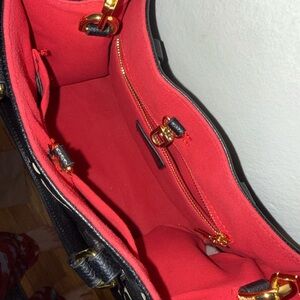 Beautiful black and white jacquard monogram bag with red lining, gently used, minimal fraying/staining, in excellent condition, designer inspired.