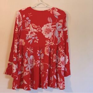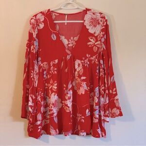Chest 36” Length 28” Free People Boho Top Rayon Red Floral Sz Small Gorgeous