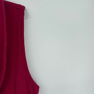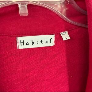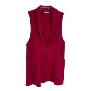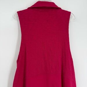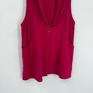 Habitat Sweater Vest Long Pink Knit Button Front Lagenlook Career Size Large. Cotton spandex. Unique square buttons. Collar and lapels. Sleeveless. Bust 42. Length 31. Measurements are approximate. Pockets. Textured top portion. Very good preowned condition.