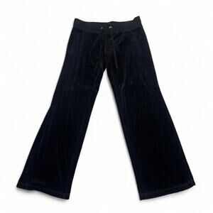 New York Company Black Velour Super Low Rise XS Wide Flared Sweatpants Jawstring