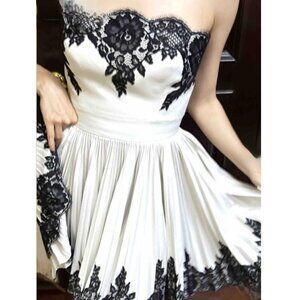 White Light gray Strapless Mini Dress Black with Lace, Pleated Skirt Small. Full accordion-pleated skirt.