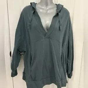 Oversized and comfy tunic sweatshirt in “Jade Shadow” (aka Green). Excellent condition, no pilling, comfy and very soft. Great for cozy nights in or over jeans. Kangaroo pocket on front. 23” pit to pit and 27.5” shoulder to hem.