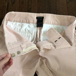 Details: Ann Taylor Women’s 2 Signature Skinny Off-White Orange Striped Cropped Pants. Functional (small) back pockets. Zipper/hook & bar/button closure. Low rise. Belt loops. Cropped. Cotton/Nylon/Spandex blend.