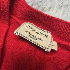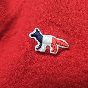 Authentic MAISON KITSUNE Red Kids Cardigan With Tri-color Fox 100% WOOL