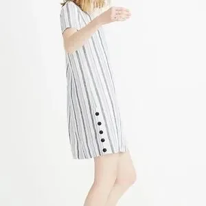 Madewell Linen Side-Button Striped Easy Dress Size XXS