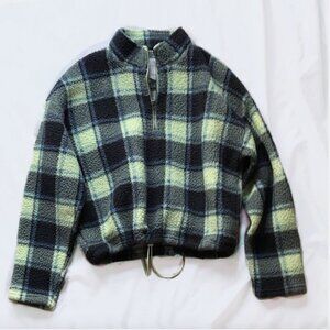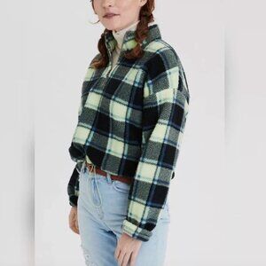 🦋 American Eagle Blue Green Plaid Quarter Zip Teddy Sherpa Pullover Jacket 🦋