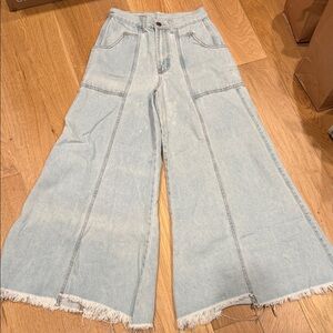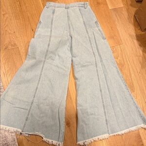 Farm Rio Chic extra wide-leg jeans with frayed hems. Ideal for a relaxed style. Bohemian style