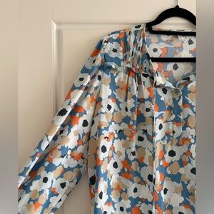 Joie Long Sleeve Floral White, Blue, and Orange Blouse Size Large