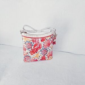 If you're looking for the perfect spring/summer Crossbody set, this one has your name on it! Featuring Multi Chattaway, crabs, lobsters, seashells, and snails in a beach-themed pattern. Whether you're planning a cruise, beach vacation, or just adding a pop of color to your summer wardrobe, this set will be a stylish addition to your Brahmin collection! Includes Registration card, Brahmin card, and Dust bag as pictured. Comes from a smoke/pet free home. Only one set available!