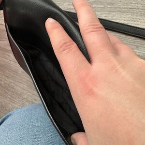Stylish black leather crossbody. Perfect for everyday use. Features adjustable strap.