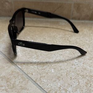 Stylish Lacoste sunglasses with a sleek black frame. Perfect for a modern look. Foldable