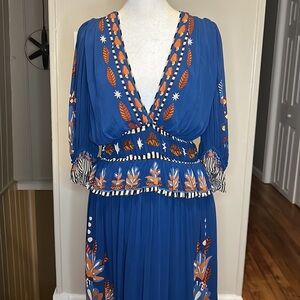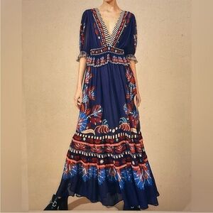 Farm Rio Nature Beauty Blue Short Sleeve Maxi Dress NWT Size Small