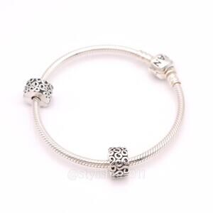 Two Authentic PANDORA Sterling Silver Swirls Clips Charms , 925 ALE Stamps