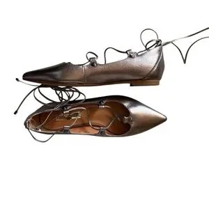 Stylish metallic flats with lace-up detail. Pointy toe. Ideal for any occasion.