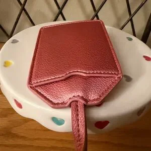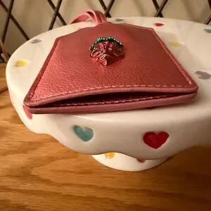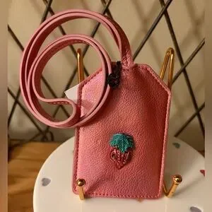 Kurt Geiger Metallic Strawberry Lanyard Bag Tag. Accessorize your favorite bag. Features Signature Crystal Embellished Eagles Head, middle & back pocket stash, lanyard strap. Nwt