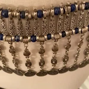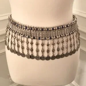 Festival Lapis and Pewter Coin Belt