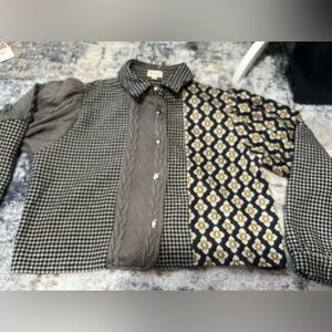 @taracoct It’s not lined. Ptp is 22.5” can go to 23”. Pics updated to show what it’s like lying flat. More boxy style. It has a little bit of a puffed sleeve and wrist cuff.