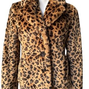 Banana Republic Y2K Safari Leopard Print Faux Fur Jacket, Sz S