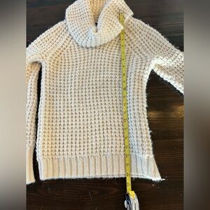 Cozy cream turtleneck by GAP. Features a textured knit. Perfect for chilly days.
