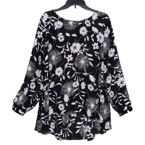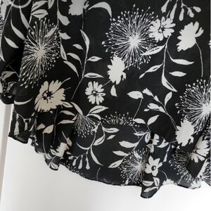 Vince Camuto Black and White Floral Print Cold-Shoulder Top Blouse Size XL