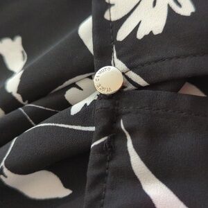 Vince Camuto Black and White Floral Print Cold-Shoulder Top Blouse.