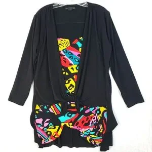 Eva Varro Tunic Top Abstract Print Colorful Art-to-Wear Tie Front size 1X Artsy