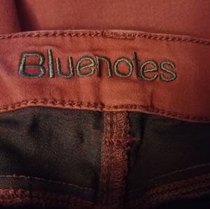 Burgundy curvy jeggings, size 28, Bluenotes, skinny legs, 5 standard pockets (front, back, coin), belt loops, zipper and button enclosure, great condition.