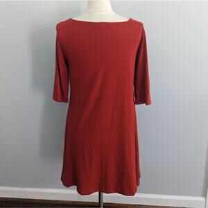 Eileen Fisher Coral Orange Asymmetrical Neckline Viscose Spandex Dress Medium