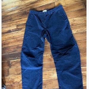 Hi! This is a pair of Nili Lotan blue corduroy carpenter pants size 8. Elegant deep blue corduroy pants. Perfect for casual or formal wear. Soft texture and stylish design. I love the way they sort of disrupt the silhouette with their unique cut and style. Very flattering. I bought these on another site and can’t return them due to that seller’s policy. I am only selling them because I need to go up a size. Thanks for considering!