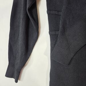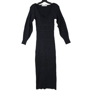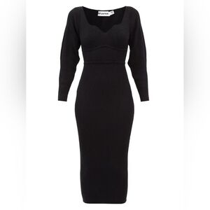 Self-Portrait’s black midi dress is rib-knitted to a svelte silhouette with an elegant sweetheart neckline and lantern-inspired sleeves.